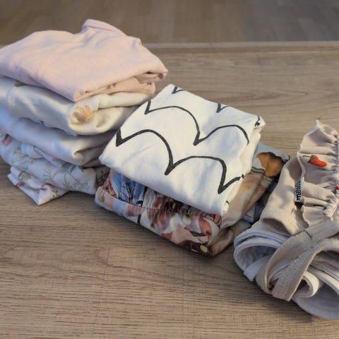 Kuvissa merkit ja koot. Reima, Peuhu, Pippi, Ciraf, MyWear, Tutta, Saana ja Olli. Pesty ja kuivattu kuivurissa, koot saattavat vähän heittää. Voin toki mitata tarvittaessa.