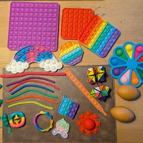 Erilaisia kuvan mukaisia fidget-leluja myytävänä. Kaikki yhteensä 5€.