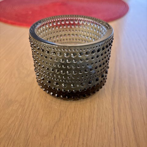 Iittala Kastehelmi kynttilälyhty mustaa lasia. Kynttilälyhdyn pinta on koristeltu helmimäisillä koristeilla, jotka luovat valolle mielenkiintoisen heijastuksen. Sopii sisustukseen ja tunnelman luomiseen. Pohjassa lukee Nordea.
