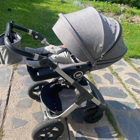 Myynnissä Stokke Xplory X yhdistelmävaunut lisäosineen, jotka näkyvät kuvassa.