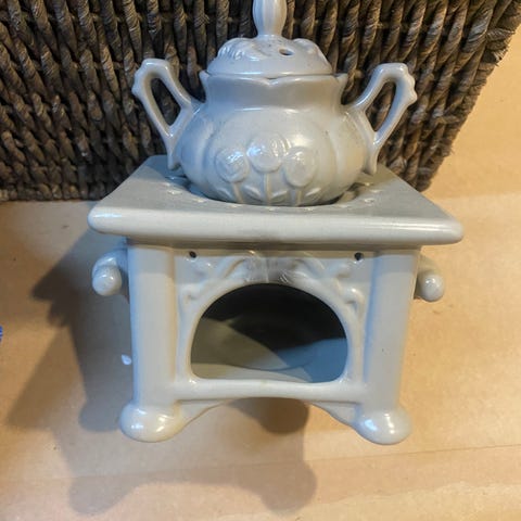 Ihana valkoinen koriste / tuoksulyhty, johon saa tuikun sisään. Hyväkuntoinen!