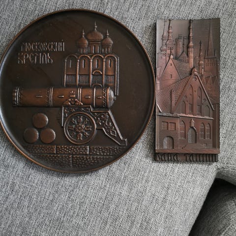 Sylvi Kekkonen reliefi messinki Eila Hiltunen -74