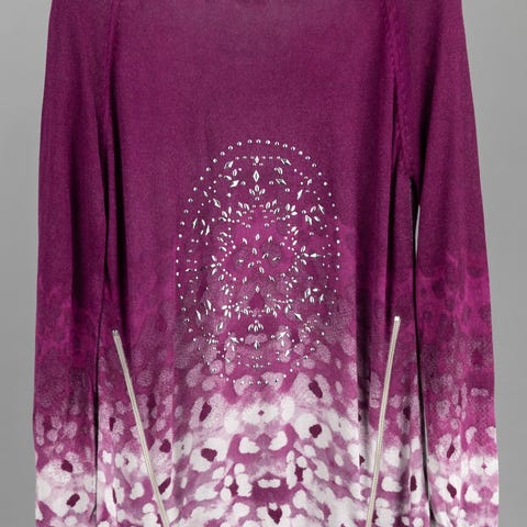 Koko M, pituus olkapäästä helmaan 63 cm. Leveyttä on hankala mitata, koska puserossa on lepakkomaiset hihat. Vastaa kuitenkin M-kokoa.