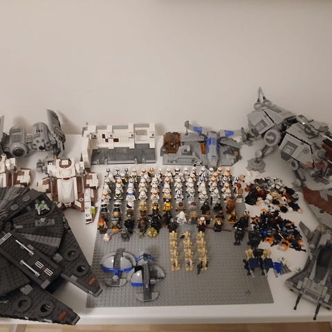Siinä on vaikka pukin-konttiin lapselle tai vaikka itselle Lego star wars kokoelma jossa on kaikkiin kaikki osat,ohjeet, ja laatikot kaikkiin paitsi isoimpaan. Hinnasta voi kertoa oman näkemyksen, en myy yksi kerrallaan.