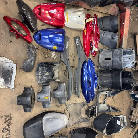 Rikkinäiset skootterin katteet ja joitain puuttu