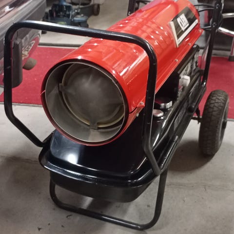 Tehokas ja laadukas otsikon mukainen hallilämmitin,polttoöljyllä ja verkkovirralla toimiva.koneen päällä poistoilman putki,laitteessa myös termostaatti,tällä laitteella lämpenee isokin tila hetkessä