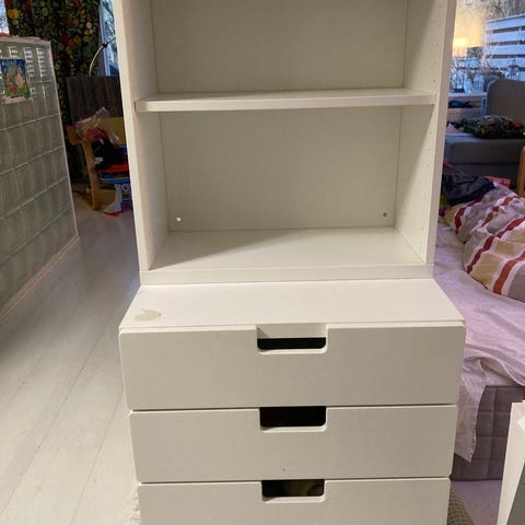 Ikea Stuva lipasto, hyväkuntoinen, ei naarmuja. Lipaston mitat: K 64cm, L 60cm ja S 51cm. Ikea Stuva kaapisto, hyväkuntoinen, ei naarmuja. Kaapin mitat: K 128cm, L 60cm ja S 51cm. Molemmat tuotteet kasattuna. Nouto pohjois-Espoosta.