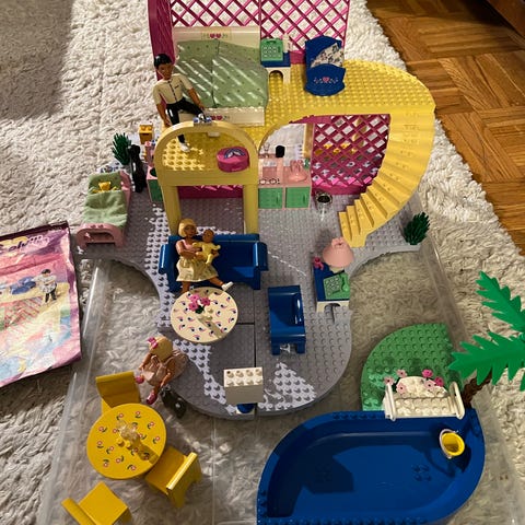 LEGO Belville ysäriltä. Sisältää ohjeet ja melkein kaikki osat. Ohjeiden mukainen äitihahmo on vähän erilainen mekoltaan ja tukka, muuten pitäisi olla kaikki oikein.