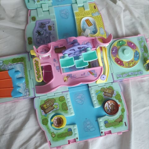 Uutena ostettu, mutta useamman vuoden leikitty Lollien leluauto. Muuten toimii normaalisti, mutta ”maalipinta” kulunut. Vaihdekeppiä painamalla syttyy auton etuvalot. Takakontin avaamalla saa leluille kylpyammeen. Uusien lelujen tieltä nopeasti uuteen kotiin. En varaile, ensimmäinen hakija saa. Koiratalous. Haku Koskenniskasta.
