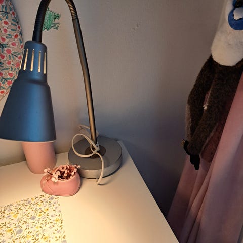Myynnissä pieni valaisin seinälle tai pöydälle, väri valkoinen.
