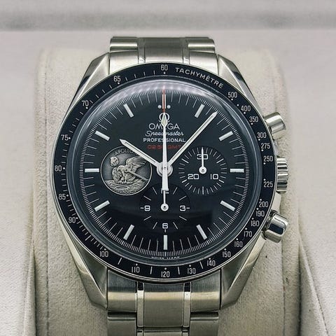 Tässä on ikoninen Omega Speedmaster Reduced -kello, joka vangitsee legendaarisen Moonwatchin esteettisen olemuksen kompaktimmassa ja käytännöllisemmässä automaattimuodossa. Referenssi 3510.50 on tunnettu mukavista mittasuhteistaan, mikä tekee siitä erinomaisen valinnan päivittäiseen käyttöön. Kelloa koristaa klassinen musta kellotaulu, jossa on kontrastiset valkoiset indeksit ja subdials, ja sen päällä on lämmin Hesalite-kristalli, joka lisää vintage-henkeä. Luotettavan Omega Calibre 3220 -automaattikoneiston voiman ansiosta tämä kello tarjoaa kätevyyttä automaattisen koneiston ja urheilullisen kronografin ominaisuuksien yhdistelmänä.