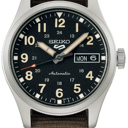 Sen sisällä Seiko calibre 4R34 -automaattikoneisto tikittää tarkasti ja luotettavasti, tarjoten manuaalisen veton, sekuntiviisarin pysäytyksen, 24 rubiinia ja noin 41 tunnin käyntivaran. Läpinäkyvä takakansi paljastaa Seiko 5 -logolla kaiverretun roottorin.