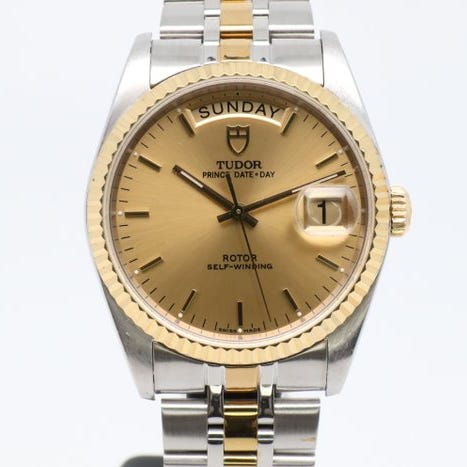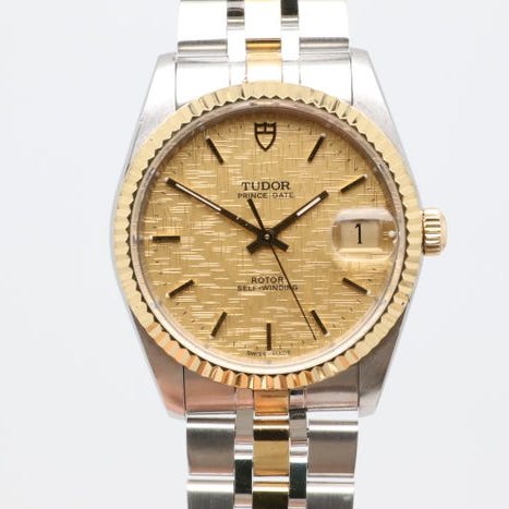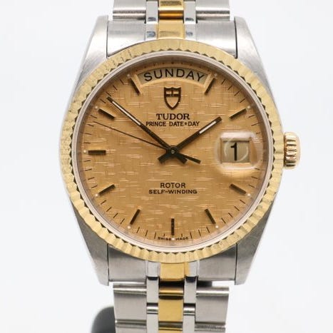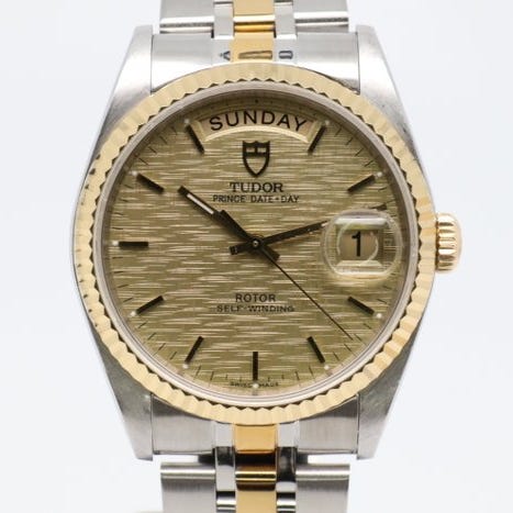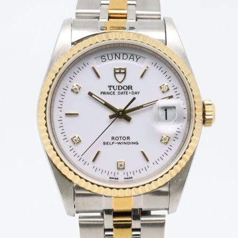 Model: Tudor Prince Date-Day 76213 hopeinen Linen-kellotaulu timanttisijoituksilla miesten automaattinen urheilukello