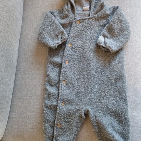 Lindexin Premium Quality uusi villasekoitteinen haalari. Vuori puuvillatrikoota. Huppu. Napitus toisen jalan lahkeeseen asti. Pesu 30asteessa. Koko 68cm. Väri vähän vaaleamman harmaa luonnossa.