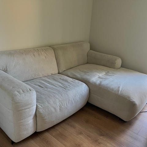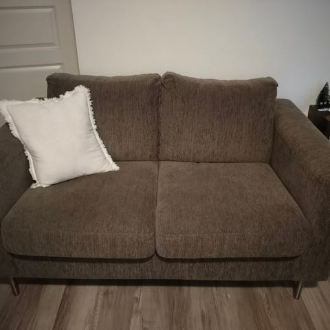 Siistissä kunnossa oleva sohva, divaanipala siirrettävä ja mahdollista pitää myös keskellä sohvaa kuten kuvissa. Höyrypesurilla pesty joku tovi sitten, ei ihmeempiä jälkiä/tahroja omaan silmään osunut.