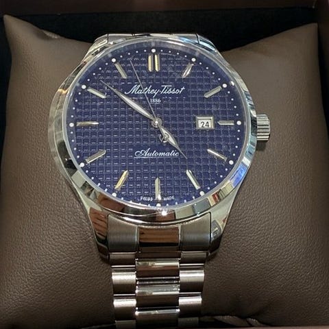 Tämä hienostunut Mathey-Tissot Genève Automatic -kello ilmentää sveitsiläisen kellonvalmistuksen eleganssia rohkealla modernilla muotoilulla.