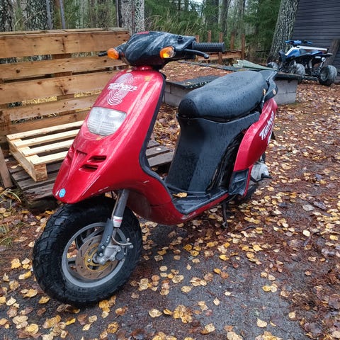 Elikkä myydään projektiksi. Lähtee käyntiin, mutta kaasutin tulvii ajoittain eikä ota täysiä kierroksia. Katteita ei ole.
