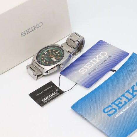 Ei alkuperäinen Seiko-kotelo, ohjeopas (Chronograph G-1), esite, puhdistusliina.