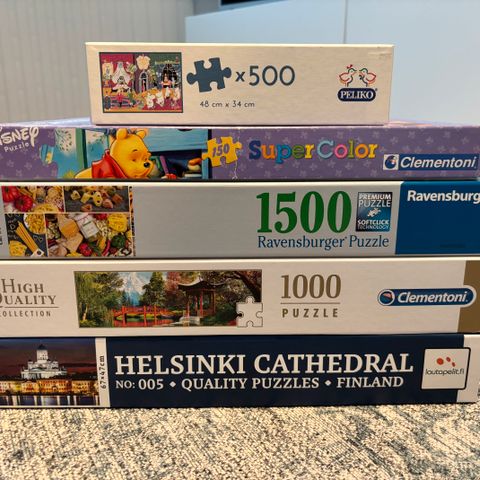 1000 palan palapelit 6 e kpl, paitsi pienin (vähän kärsinyt) laatikko 5 e. Tai kaikki kolme 15 e.