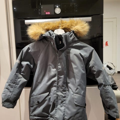 Talvitakissa lumilukko vyötäröllä. Säädöt tarroilla ranteissa ja kuminauhalla vyötäröllä. Saumat teipattu. Käytetty koulussa ja lasketellessa. Taskuja 2 + 1 hihassa. Koiratalous. Hihoissa vesitahra, mutta en pese sitä ja kuluta ominaisuuksia turhaan. Pientä kulumaa hihoissa. Kunto hyvä. Kerran pesty.