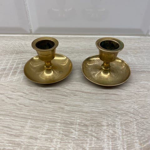 Messinkiset kynttilänjalat (Made in india). Mukaan myös jouluiset koristeet. Halkaisija 8cm.