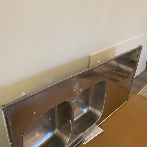 Keittiöallas valumatasolla, hana ja keittiötaso