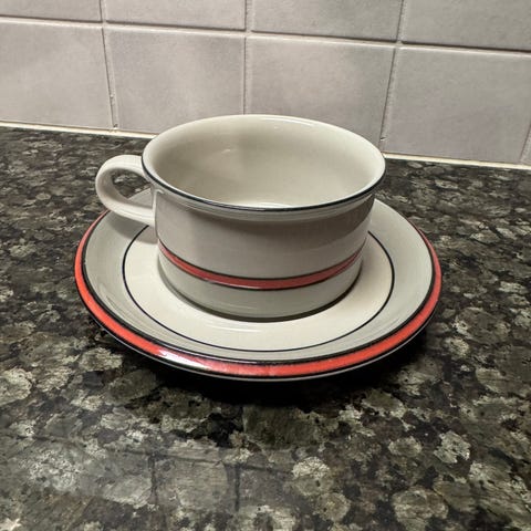 Arabia Aslak kahvikuppeineen ja lautasineen