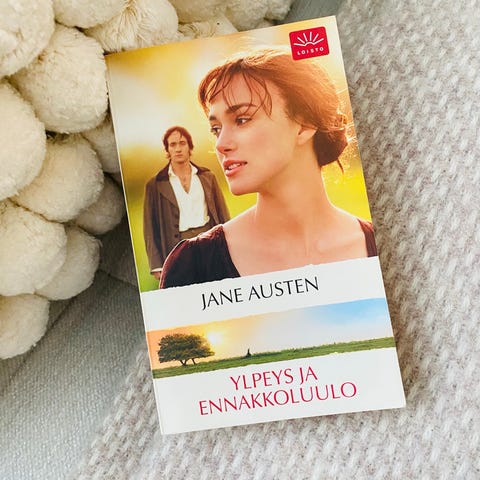Jane Austen Ylpeys ja ennakkoluulo kirja. Pehmeäkantinen pokkari