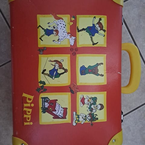 Peppi Pitkätossu Lasten matkalaukku punainen kuvituksella