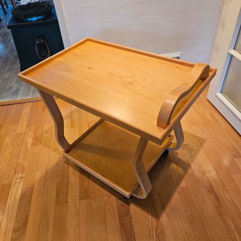 Rullat alla oleva laadukas suomalainen tarjoilupöytä. Siistikuntoinen, mutta alunalkaen 80-luvulta. Ollut yöpöytänä. Kevyt liikuteltava, säilynyt siiskuntoisena ja uuden näköisenä.
