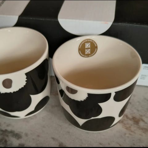 Uudet ja käyttämättömät Marimekon Pikkuinen Unikko korvaton kuppi 2dl.