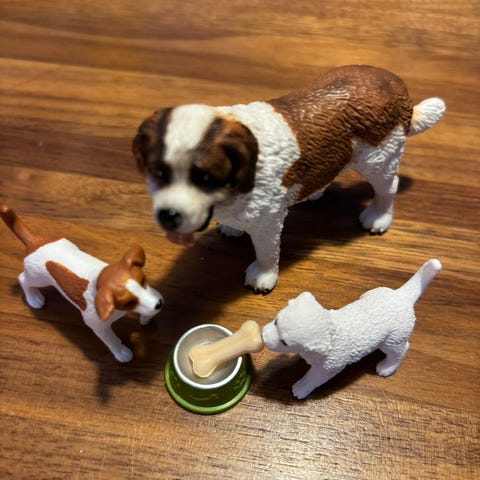 Schleich koirat ja ruokakuppi.