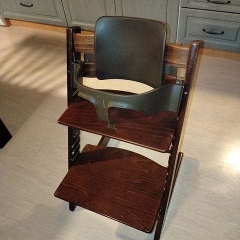 Myydään siisti ja ehjä syöttötuoli. Vähästä kulumaa parissa kohdassa. Haku Kellosta. 15 €.