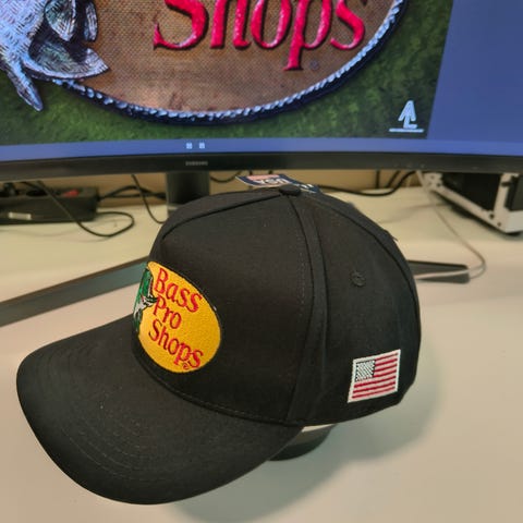 "Aito Bass Pro Shops Lippis (Brodeerattu Oliivinvihreä Made in USA/Jalapeno), Tuotenumero, 3873362, Hattuja on tuotu sekä Yhdysvaltojen Baltimoresta ja Kanadan Red Deerestä.