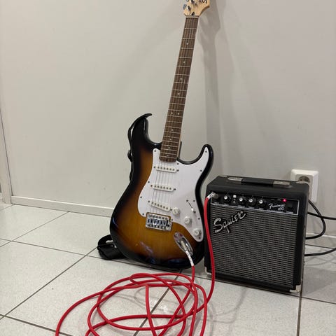 Myydään Fender Squier Affinity Series Stratocaster aloituspaketti. Mukana kitara, Fender Frontman 10W vahvistin ja kitaralaukku.