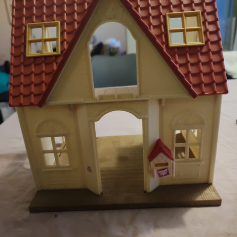 Sylvanian Families lelutalo, muovista valmistettu, väriltään punainen ja vaaleanpunainen. Lelutalo koostuu useista osista, joissa on ikkunoita ja ovia. Sopii lasten leikkeihin.