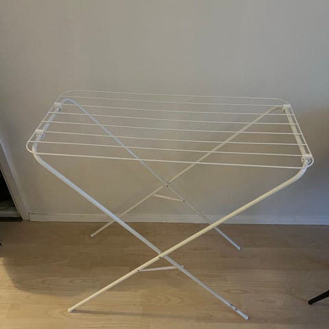 Myydään perusmallinen, kokoontaitettava pyykinkuivausteline.