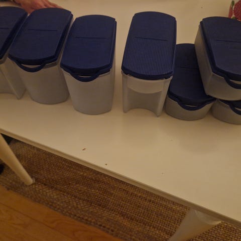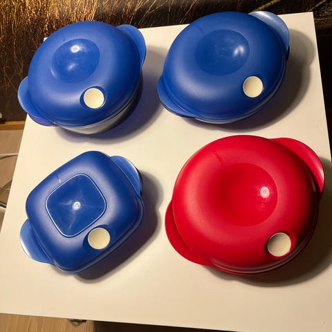 Vanhat Tupperwaren säilytysrasiat ja mehukannu. Joko 2 €/kpl tai kaikki 10 €