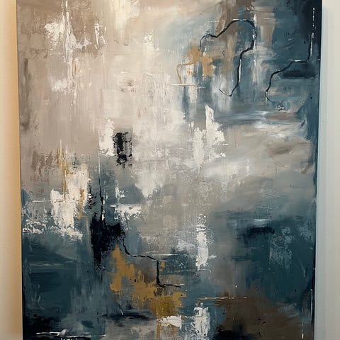 Akryyliväreillä maalattu abstrakti merimaisema.