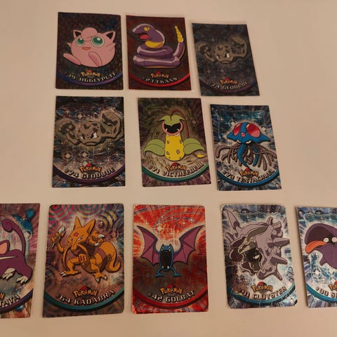Erä Pokémon topps keräilykortteja, sisältäen erilaisia hahmoja ja korttityyppejä. Kortit ovat kokoelmakäyttöön soveltuvia ja vaihdettavia. Kunnot vaihtelevat, saa tarjota myös haluamistaan.
