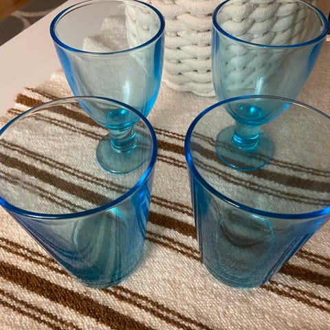 Toisessa lasissa pieni risku reunassa, näkyy kuvassa. Ei tarroja. Yhteensä 10e. Tarjouksia voi myös laittaa.