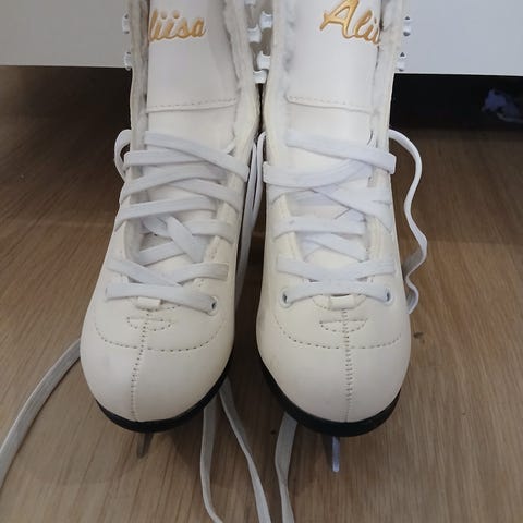Lasten luistimet, koko 33, mutta ehdottomasti suosittelen jalalle kokoa 31, valkoinen väri.