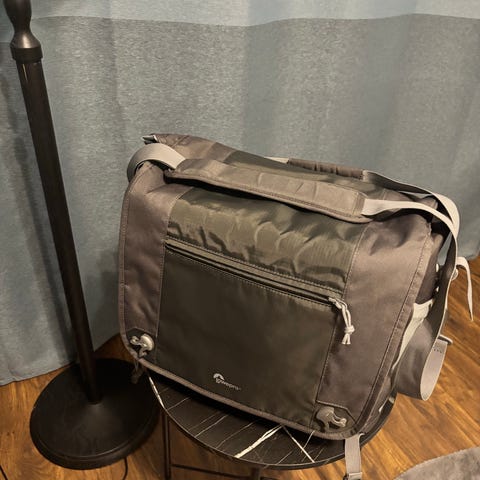 Vain kertaalleen Hetta-Pallaksen kävelytetty kameralaukku, jolla SLR:n saa nopeasti eteen käytettäväksi. Mukana kaikki hihnat ja erillinen objektiivikotelo. Tämän saa myös rinkkaan kiinni näppärästi.
