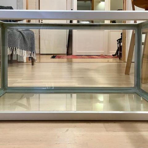 Noin 30 vuotta vanha akvaario terraarioksi.