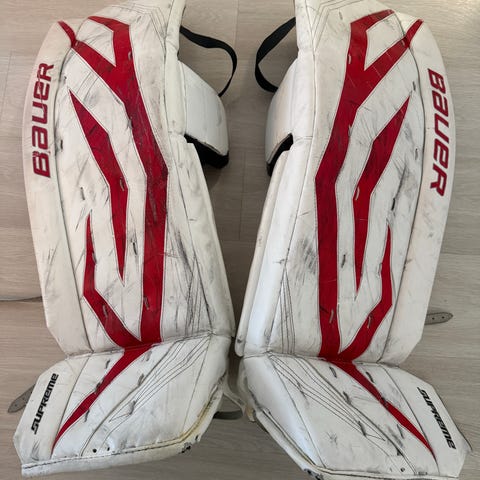 Bauer Supreme S170 jääkiekkomaalivahdin patjat, koko Sr L. Tarranauhat vaihdettu, ok kuntoiset. Höntsävahdilta toiselle, miksei kaljaliigaankin...