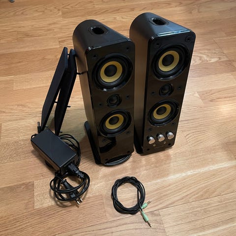 Moitteettomassa kunnossa olevat Creative GigaWorks T20 Series II -stereokaiuttimet.