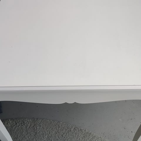 Käsin maalattu säädettävä ruokapöytä. Helppo maalata myöskin uudestaan, maalattu akryylimaalilla. Pöydässä on muutamia pinttyneitä kohtia, mutta tosiaan helposti peitettävissä hieman hiomalla ja uudelleen maalaamalla :)