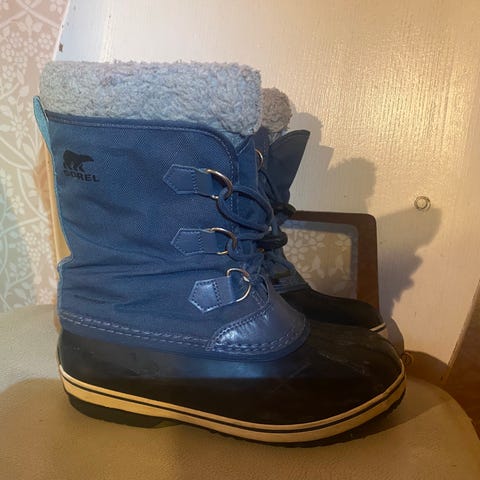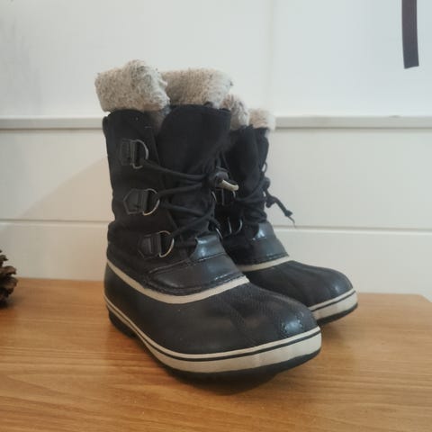 Sorel-merkkiset nätit talvikengät. Päältä hieman tummuneet, vaikka eivät ole kovin paljon käytössä olleet. Koko 37.