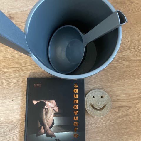 Saunapaketti (löylykiulu, löylykauha, saunaveijari-kivi ja Saunavuoro-kirja)