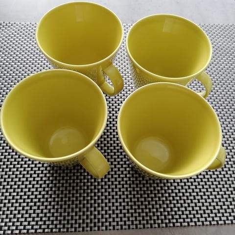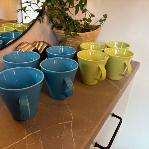 Käytetyt, hyväkuntoiset. Ei lohkeamia tai jälkiä. Yhdessä pinkissä vähän lusikanjälkiä.